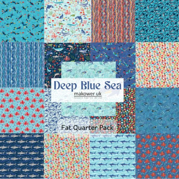 Fat Quarter Pack Deep Blue Sea by Makower features all the fabrics from this under water collection. Pack includes 17 fat quarters.