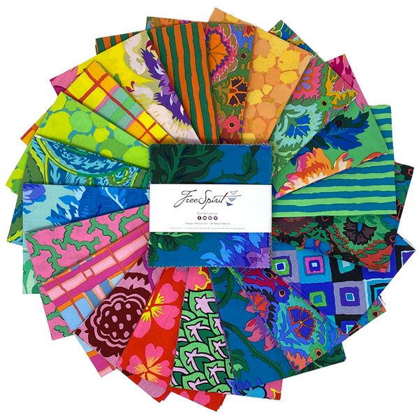 FB6CPGP 5″ Charm Pack Bright. Kaffe Fassett Collective for FreeSpirit presents this new collection. Featuring re-imagined designs by Kaffe Fassett & new designs from Brandon Mably. This collection features an array of brighter bold florals, stripes and geometric shapes.