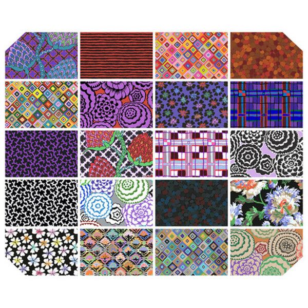 FB6CPGP 5″ Charm Pack Dark. Kaffe Fassett Collective for FreeSpirit presents this new collection. Featuring re-imagined designs by Kaffe Fassett & new designs from Brandon Mably. This collection features an array of darker bold florals, stripes and geometric shapes.