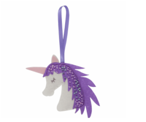 Kit includes: acrylic felt shapes, thread, stuffing, needle and ribbon as well as step-by-step instructions.
