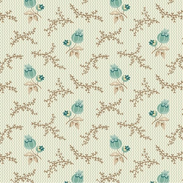 21028-T John in Teal is a beautiful vintage floral. Featuring hints of blue, on a cream and blue background. This collection features a thistle print, all inspired by their love of everything vintage.