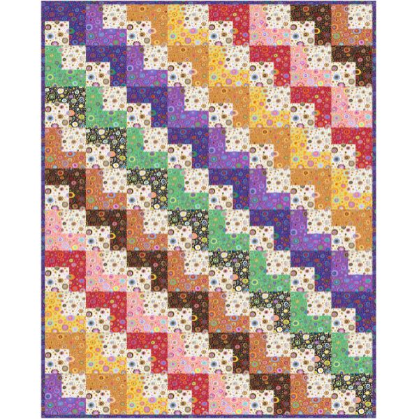 Firelight Quilt Kit, Ode to Roman Glass by Kaffe Fassett includes all the fabrics, pattern, and binding to create the quilt top. The quilt features a beautiful design of diagonal stripes using Kaffe Fassett’s iconic Roman Glass design.