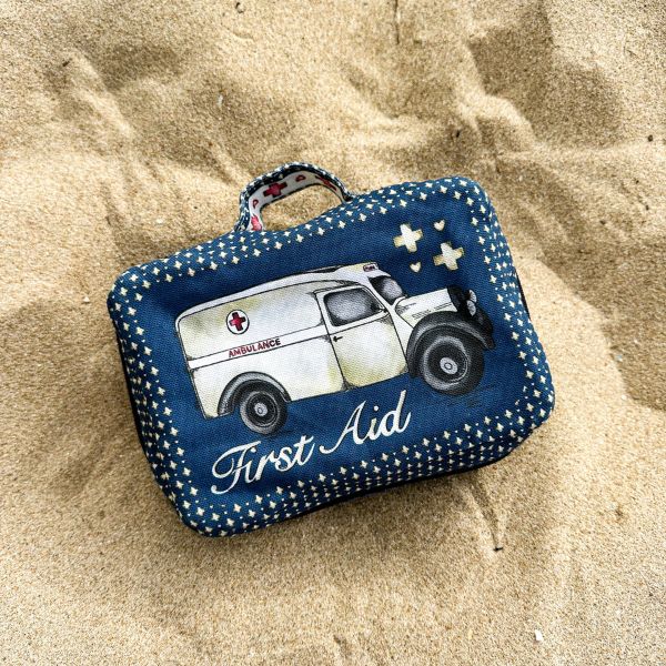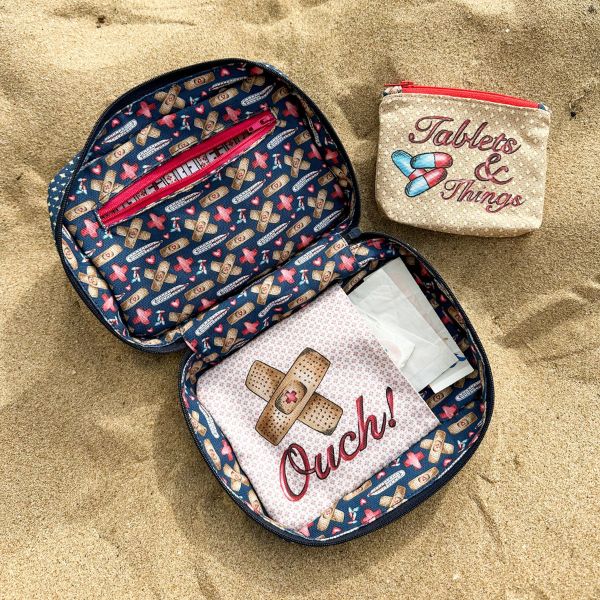 The digitally printed cotton canvas fabric panel has all the pieces, featuring beautifully illustrated prints in shades of navy, red and gold that you need to create your own First Aid Case. The top section has a zipped pocket that’s ideal for scissors and smaller supplies. The bottom section has an Ouch Pocket for keeping a range of plasters in and some antiseptic cream. Fill up the rest of the case with all your essential supplies. The Tablet Pouch has been designed to fit a few blister packs of tablets or smaller items and can be kept in the First Aid Case. It’s really handy too, to pop in your bag when you’re on the go.