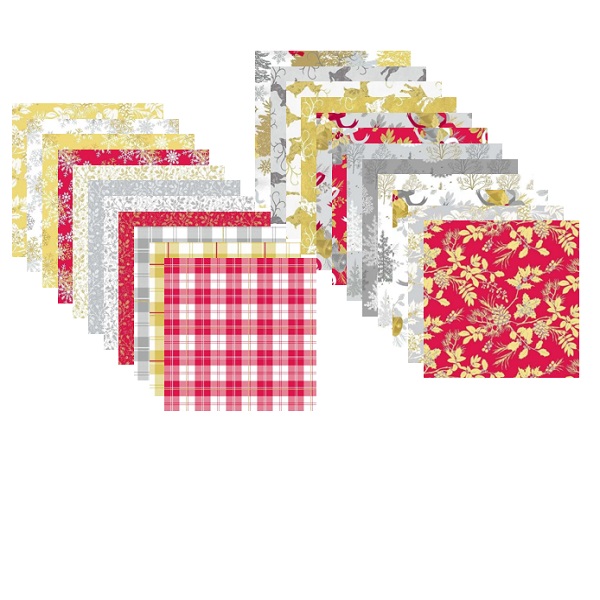 Metallic silver and gold shimmer and a touch of Christmas red, woodland creatures, peaceful timberland, festive boughs, ringing bells, wrapping paper plaids and sparkling snowflakes makes the collection ideal for Christmas projects.