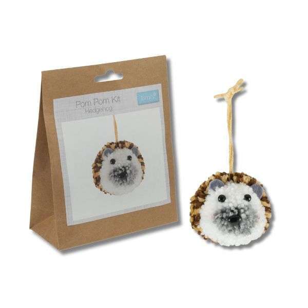 GCK185 Hedgehog Pom Pom Kitt by Trimits. Make your own cute pom pom hedgehog. These pom pom kits are simple fun Christmas decorations to hang on your Christmas tree. These pom pom kits are also great for any time of the year, suitable for beginners and younger crafters. These decorations are great for keeping kids busy.