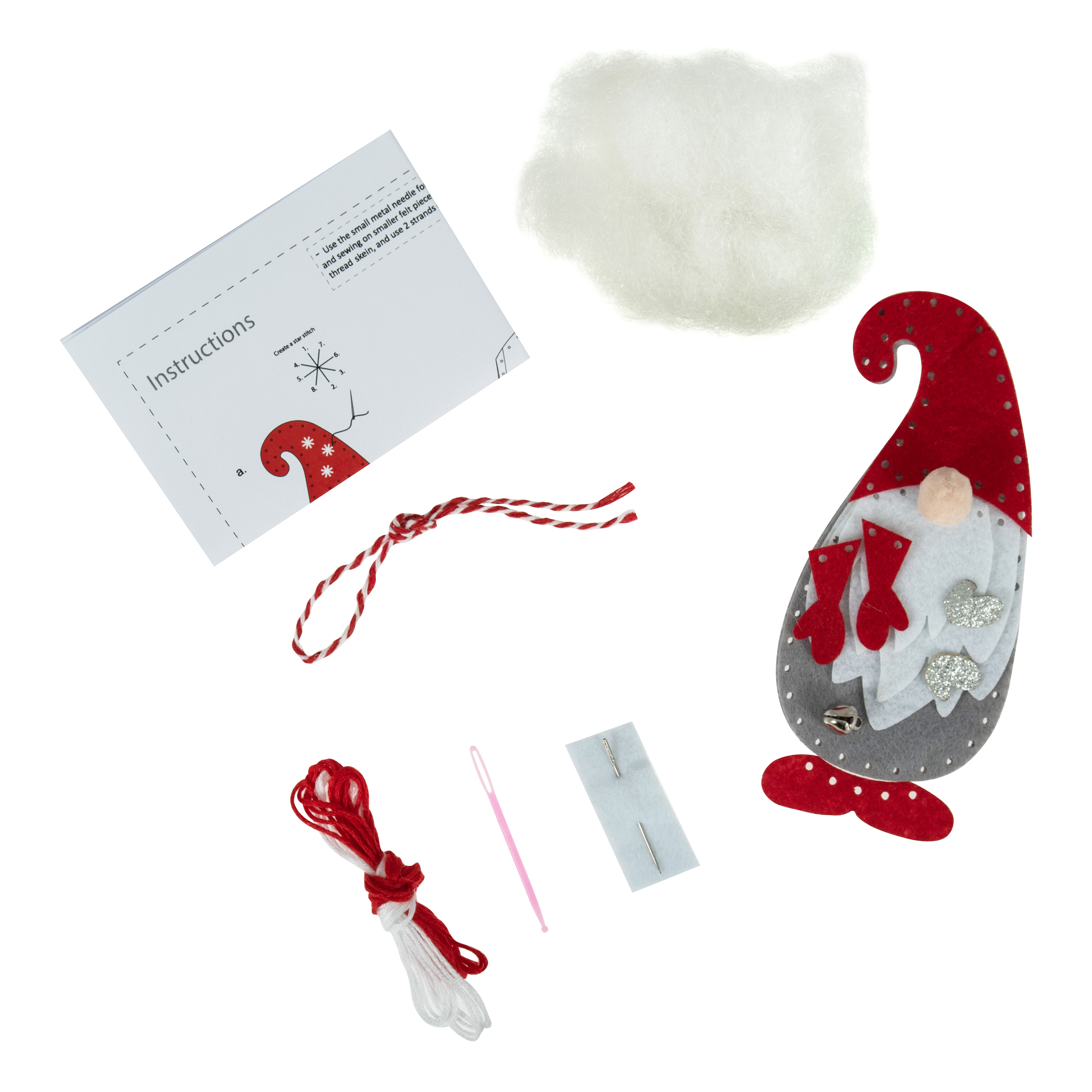 Kit includes: pre-cut felt shapes; stuffing; bell; threads; pom pom; bakers twine; metal needle; plastic needle and step-by-step instructions.