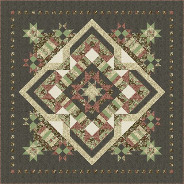 The Kit also includes the pattern for 2 other sizes of 53″ x 53″ and 106″ x 106″. -The quilt kit includes the fabric needed to make the size 73″ x 73″.