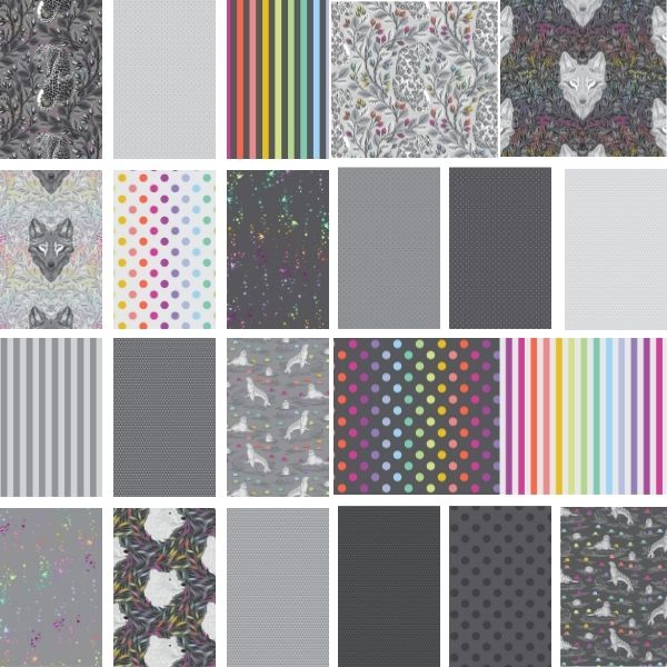 GrayworkFat Quarter Pack, Graywork by Tula Pink contains a selection of 24designs from Tula Pink’s Graywork collection, including the new prints and the updated true colors.