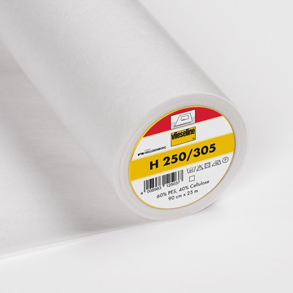 H250 is a firm, stable interlining for shaped cuffs, shaped belts and for textile craftwork. Guarantees a durable shape.