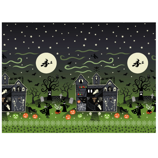 A spooktacular collection of Halloween fabrics that all glow in the dark! There’s treat bag panels, some frightfully fabulous haunted house double edge borders and other scarily special glow in the dark designs for lots of happy Halloween sewing projects!