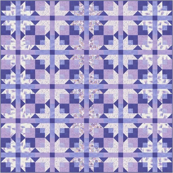 Heather Quilt Kit, Delphinium by Janet Clare includes all fabrics for the quilt top and binding, plus the pattern.
