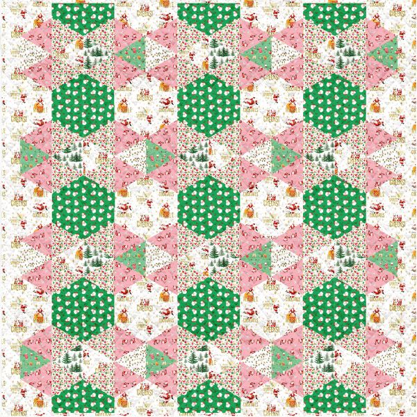 Hexi Quilt Kit, North Pole Social Club Collection by Camelot Fabrics includes everything you need for the quilt top and the pattern.
