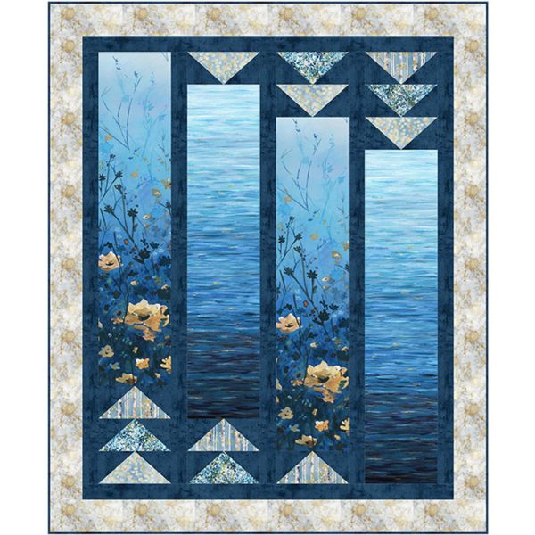 Ingots Quilt Kit, Behind Blue Eyes by Funny Girl includes all fabrics for the quilt top, binding and the pattern. Behind Blue Eyes is a beautiful collection featuring gorgeous flowers and scenes of nature. The textured brushstroke-look in the print creates a stunning effect in the fabric.