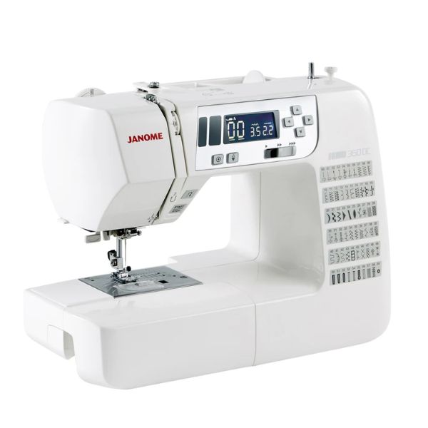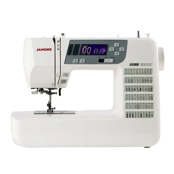 Janome 360DC Sewing Machine – sew all types of projects with a great selection of 60 stitches. Fully computerised with stitches and settings at the touch of a button. This model has lots of easy to use features which make sewing a pleasure and with an aluminium die cast body you can be assured of Janome’s robust build quality.