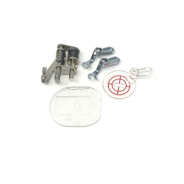 The three interchangeable feet attach to the holder with a screw for maximum sturdiness and safety. They consist of a closed-toe foot, an open-toe foot and a clear view foot which is ideal for uneven surfaces and evenly spaced quilting. The clear view foot is also designed with 1/8″ markings for even spacing when “Echo Quilting” eliminating the need to mark out your fabric beforehand.