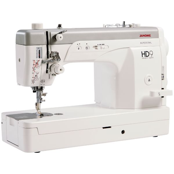The Janome HD9 Heavy Duty Professional sewing machine is the perfect machine for the serious sewist. With fast speeds up to 1600 spm and heavy duty capabilities, the HD9 is the perfect flat bed, straight stitch only machine for serious sewing and quilting. The large bobbin design holds 40% more thread than a standard bobbin and the machine has an independent bobbin winding motor and a remote thread cutter compatible socket. The HD9 has no oil lubrication holes in the bed, therefore no oil stains on fabrics.