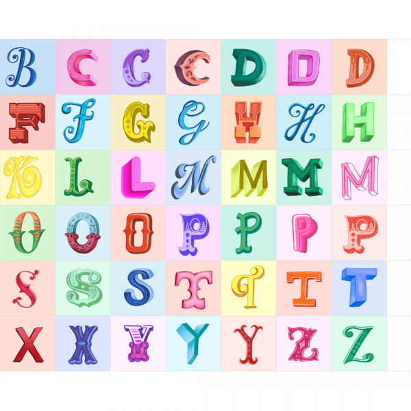 Jennie Maizels Colour Collection: JM4 Jennie Maizels Alphabet Panel 18″ x 44″: Lewis & Irene