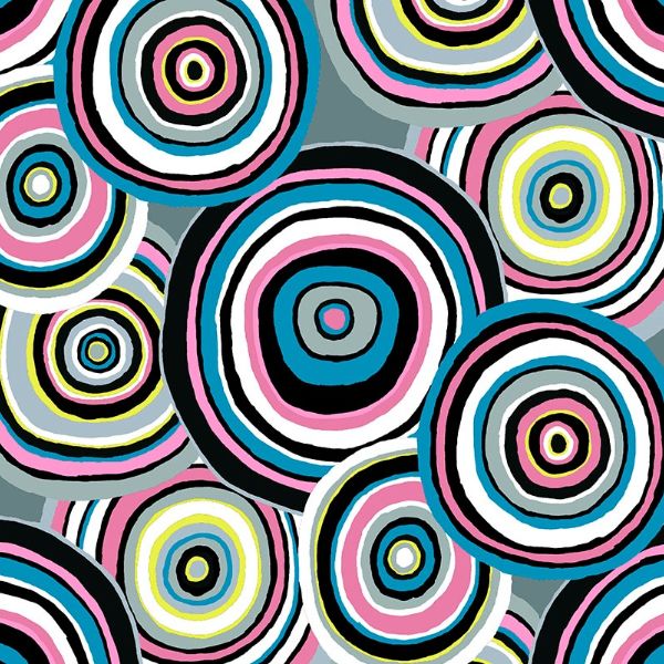 It is a unique collection and only going to be a once-off offer and then it’s gone.  He has gone back into his favourite fabrics that haven’t been reproduced before and brought them back to life with some new colourways. He hopes that you are excited by playing with these fabrics as much as he has been and will make wonderful choices and combinations of them.   There are a lot of circular prints and some lovely stripes.