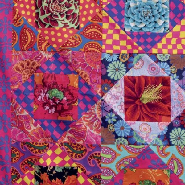 The Economy Block workshop is based on the Hot Economy quilt pattern in Kaffe Fassett’s book, Quilts in London. This is a class suitable for beginners who already know how to sew a seam and how to use a rotary cutter. It is also for more advanced quilters who wish to concentrate on complex colour development.