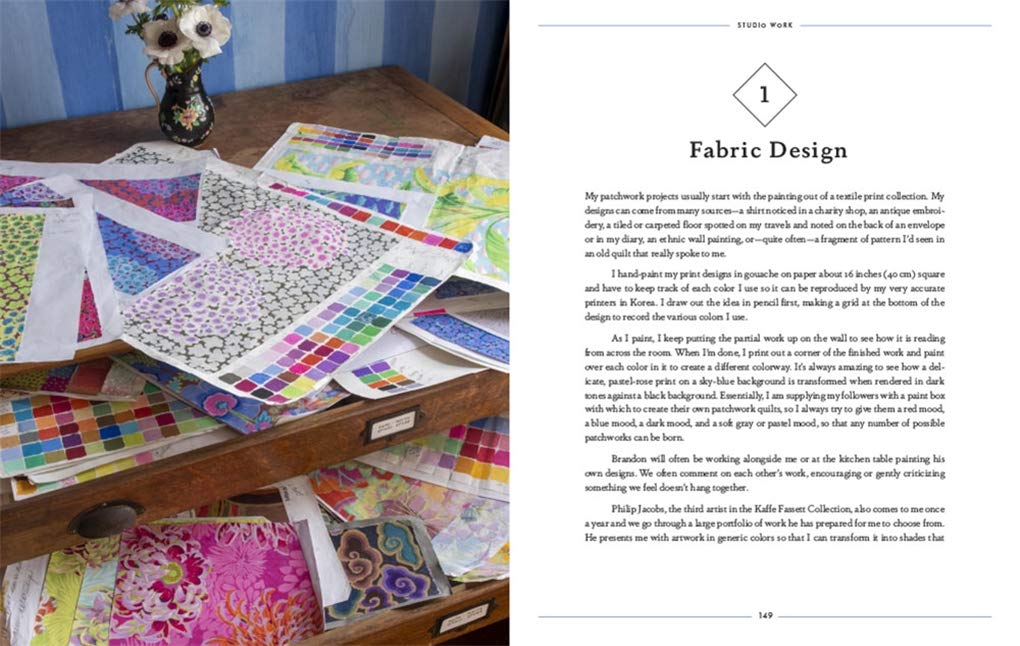 In addition to looking at Fassett’s past designs, the book features new patterns in the areas of quilting,