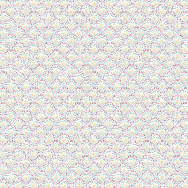 L2.A Fancy Shells Multi, Seas the Day by Lewis & Irene is featuring rows of delicate shells in soft coral, aqua, and sandy gold. The repeating scalloped design creates a rhythmic, almost wave like effect, perfect for adding movement and texture to any project. Ideal as a blender or a stand out print, this design pairs beautifully with the nautical motifs of Seas the Day, making it perfect for quilts, beach bags, and coastal-inspired home décor.