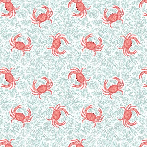 L5.A Crabs on Seaweed, Seas the Day by Lewis & Irene is featuring cheerful red crabs nestled among flowing seaweed on a soft aqua background, this playful print captures the spirit of the seaside. Perfect for children’s quilts, summer projects, or nautical themed décor, it brings a lighthearted coastal touch to any creation.