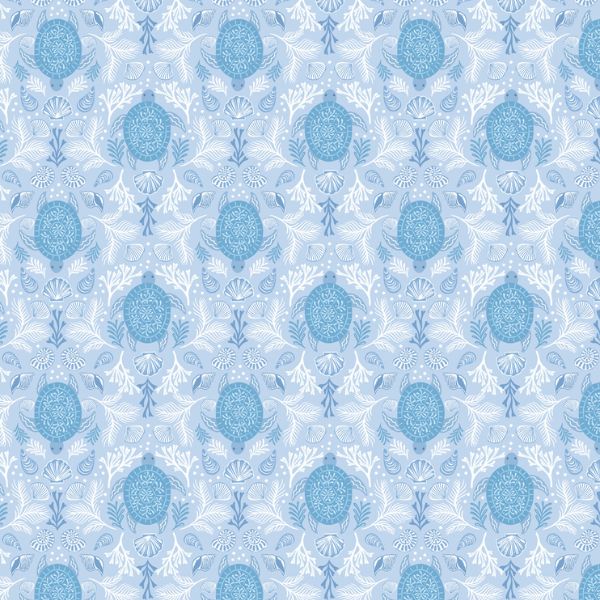 L6.A Mirrored Turtle Blue, Seas the Day by Lewis & Irene is featuring gentle turtles gliding through strands of seaweed, this calming print captures the magic of marine life. Perfect for seaside quilts, coastal décor, and playful summer projects, it brings a soft ocean touch to any creation.