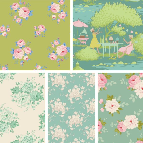 Lime and Teal Fat Quarter Pack contains 5 designs from the Sunday brunch collection in limes and teals.