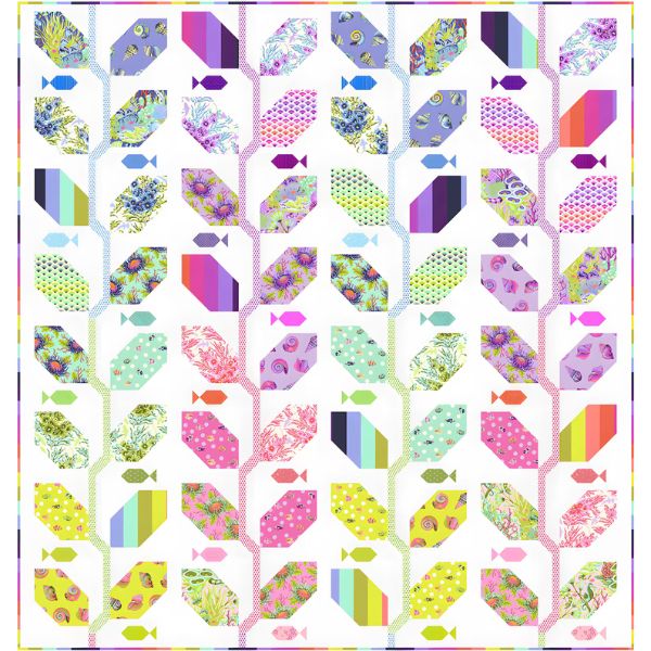 Marine Meadow Quilt Kit, Floral Reef by Tula Pink features fabrics from Floral Reef collection.