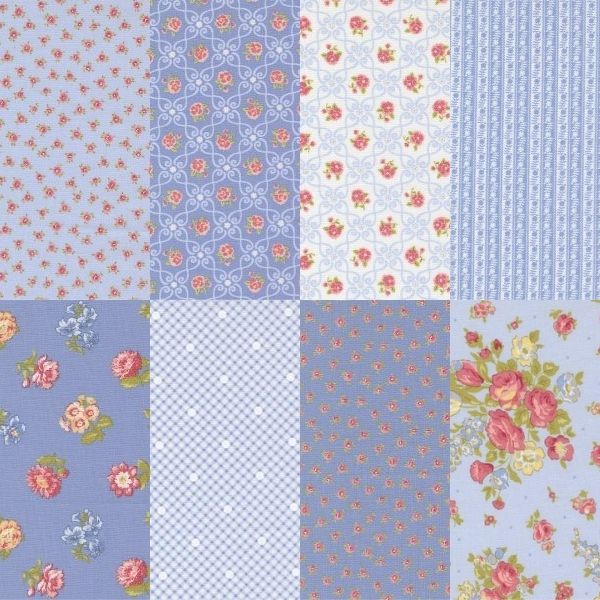 Memory Lane Blue Fat Quarter Pack (8 pcs) by Brenda Riddle Designs