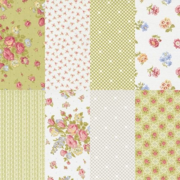 Memory Lane Green Fat Quarter Pack (8 pcs) by Brenda Riddle Designs