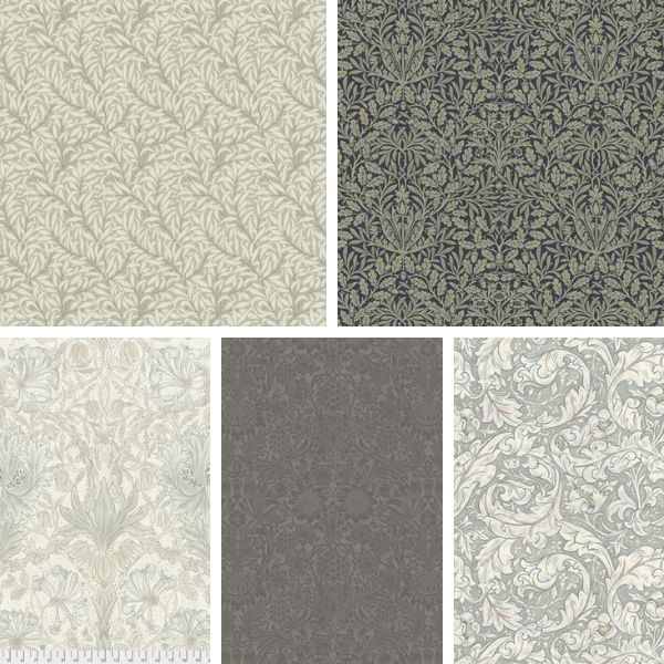 A selection of mineral fabrics by Morris & Co. in a Fat Quarter Pack of 5 pieces.