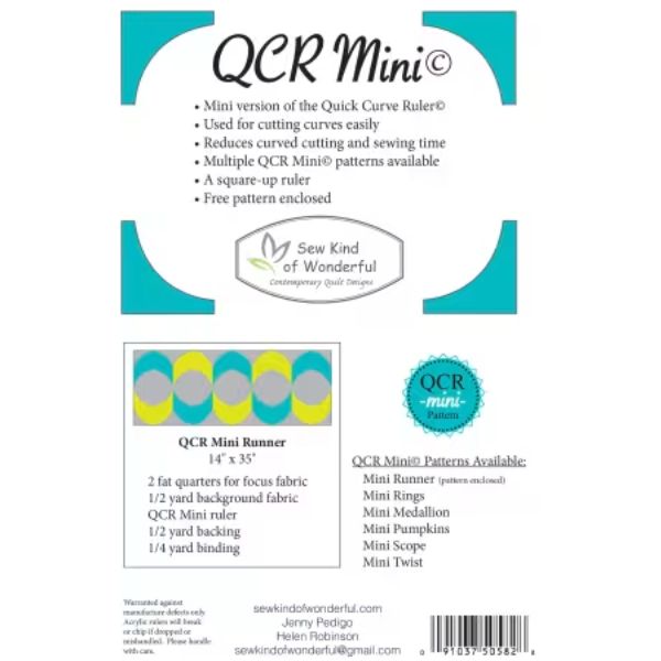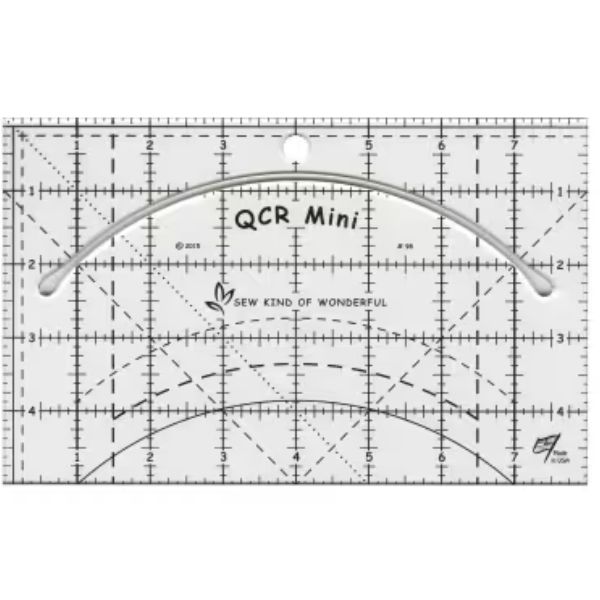 This is the mini version of the Quick Curve Ruler. It is used for cutting curves easily. Reduces curved cutting and sewing time. Use it as a square-up ruler. Ruler measures 5in x 8in.