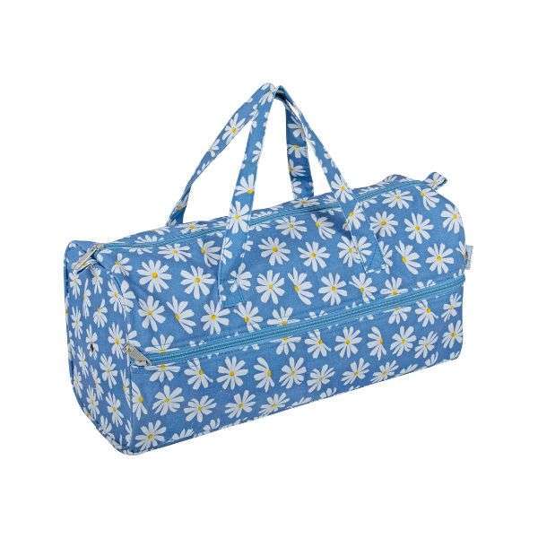 Denim Daisies Knitting Bag is a soft stylish fabric knitting storage bag. A perfect storage solution for all your knitting projects, wool, accessories and suitable for needles up to 40cm in length. This bag features double handles and zip up pocket on the front. It also has a handy eyelet at one end for your yarn.