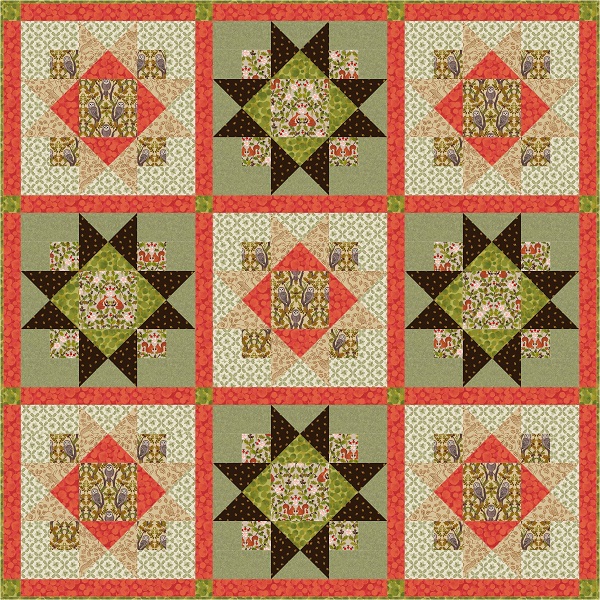 Old Quercus Quilt Kit, by Lewis & Irene features fabrics from the Old Quercus collection by Lewis & Irene. The colours mirror the changing hues of Autumn, a season where oaks leaves change, and evoke the nostalgic ambiance of an Autumnal woodland walk.