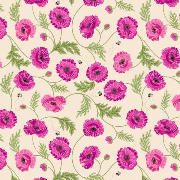 P765.1 Large Poppy and Bee on Cream by Lewis & Irene features a beautiful poppy design with little bumble bees.