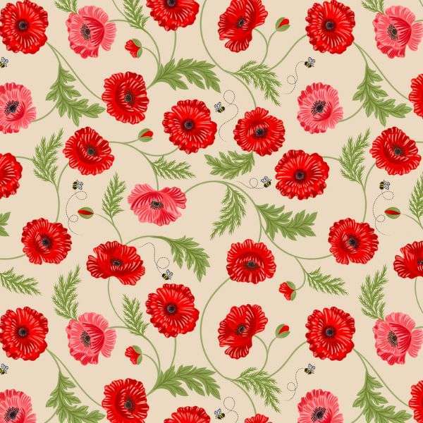Poppies by Lewis & Irene, is a pretty collection of poppies with a poppy field double edge border. The double edge borders can be used to make dresses. They can also been used for edges of quilts and in all kinds of sewing projects. Poppies have long been a symbol for remembrance. In recent times poppies serve as remembrance to those who fought in wars but they have long been used as symbols as far back as ancient Greece and ancient Egypt.