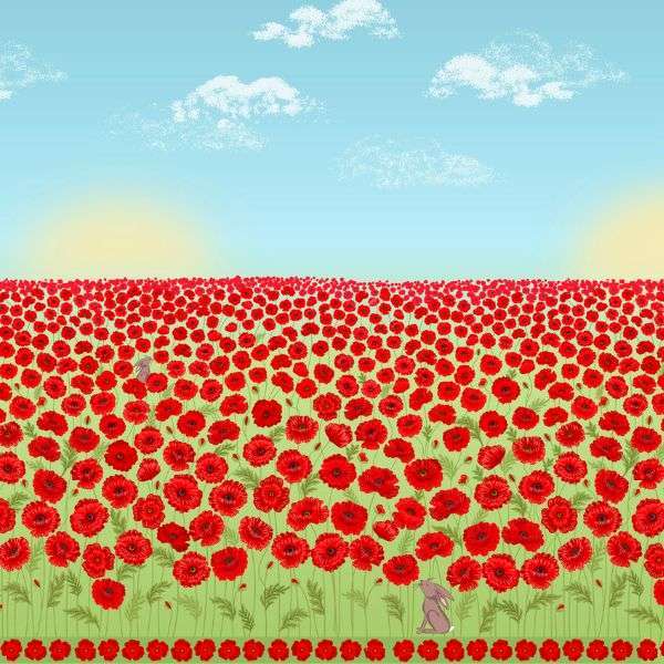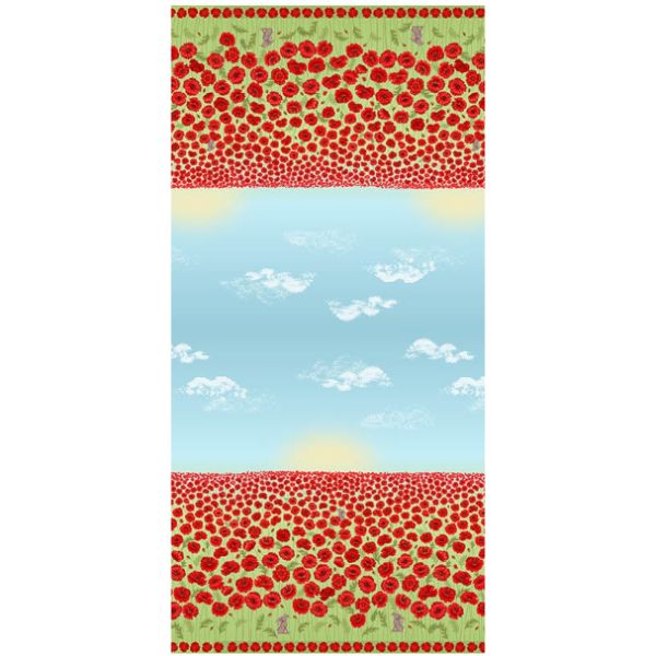 P766 Poppy Fields Double Edge Border by Lewis & Irene features a beautiful poppy design with blue skies, clouds and hares.