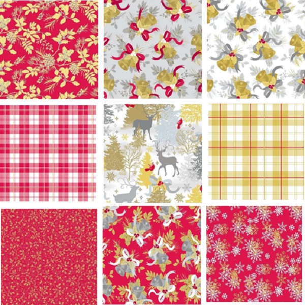 Metallic silver and gold shimmer and a touch of Christmas red, woodland creatures, peaceful timberland, festive boughs, ringing bells, wrapping paper plaids and sparkling snowflakes makes the collection ideal for Christmas projects.