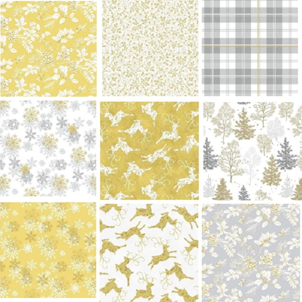 Metallic silver and gold shimmer and a touch of Christmas red, woodland creatures, peaceful timberland, festive boughs, ringing bells, wrapping paper plaids and sparkling snowflakes makes the collection ideal for Christmas projects.