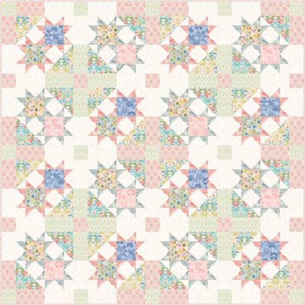 Paradise Quilt Kit 1 features fabrics from the Paradise collection by Lewis & Irene. The main colours are pink, blue, green and cream.