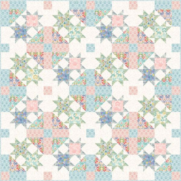 Paradise Quilt Kit 2 features fabrics from the Paradise collection by Lewis & Irene. The main colours are pink, blue, green and cream.