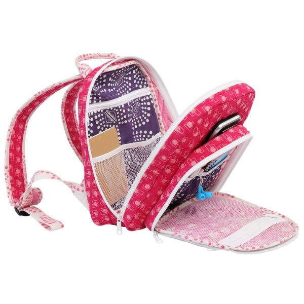 This compact and feature-rich backpack is sized to work well for adults as well as children. Just adjust the lengths of the shoulder straps (as directed in the pattern) to make it perfect for everyone, from 4-year-olds to 90-year-olds.