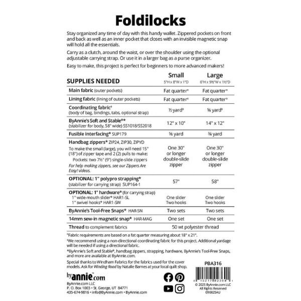 PBA316 Foldilocks Bag Pattern ByAnnie. Stay organised at any time of day with this handy wallet.