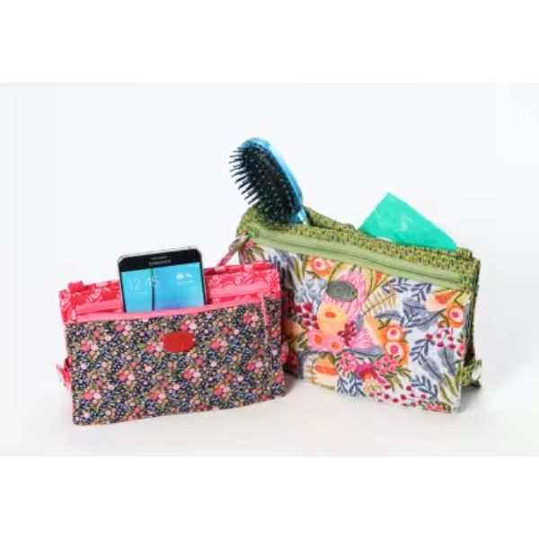 Carry as a clutch, around the waist, or over the shoulder using the adjustable carrying strap. Can also be used in a larger bag as a purse organsier.