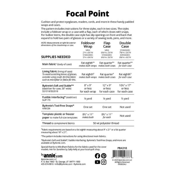 PBA318 Focal Point Bag Pattern ByAnnie protects glasses, readers, cords, and more in these handy padded wraps and cases.