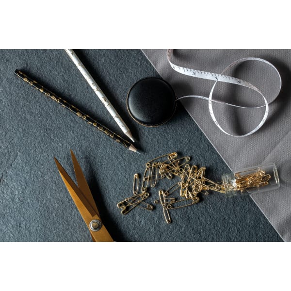 Each pack contains 2 premium fabric pencils with a gold foil signature print design. White and grey pencil leads make these pencils suitable for light and dark based fabrics. Your pencil marks will easily brush off from most fabrics. Pencils can be sharpened to a fine point. Ideal for dressmaking, tailoring, quilting and more.