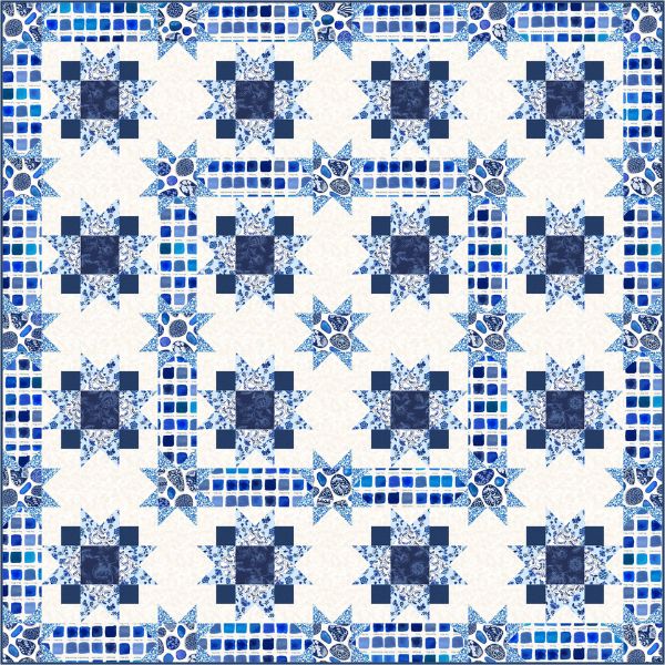 Porcelain and Sea Glass Quilt Kit by Stuart Hillard includes all fabrics for the quilt top and binding, plus the pattern.