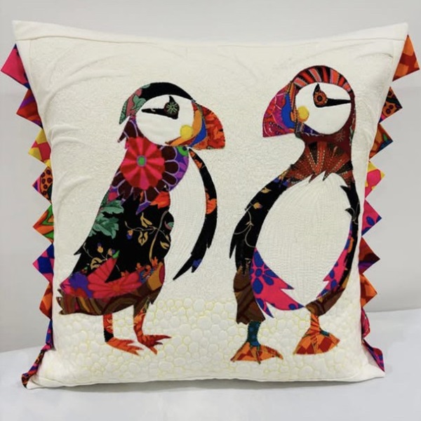 Puffin Applique Cushion Pattern by Delphine Brooks is a really fun project to make and create. Step by step instructions on how to make and create your own cushion using raw edge applique and optional quilting.