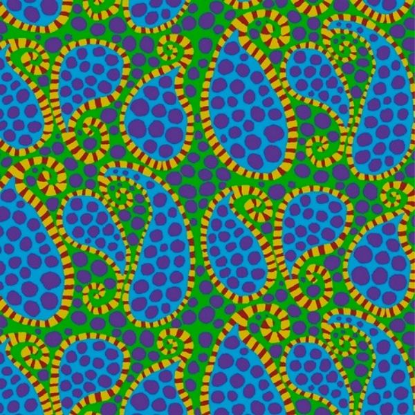 PWBM090.Green Paisley Dot by Kaffe Fassett Collective. Kaffe Fassett Collective for FreeSpirit presents this new collection. Featuring re-imagined designs by Kaffe Fassett & new designs from Brandon Mably. This collection features an array of bright bold flowers, including rhododendrons, hyacinths, and floating hibiscus flowers.